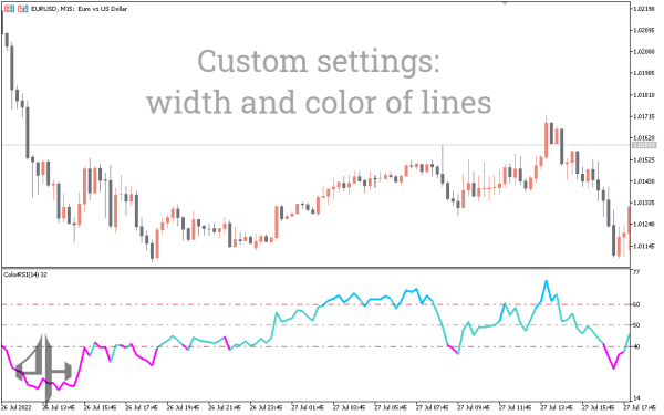 Based on overbought oversold RSI levels, the Color RSI Indicator for MT5 offers forex BUY and SELL trading signals.