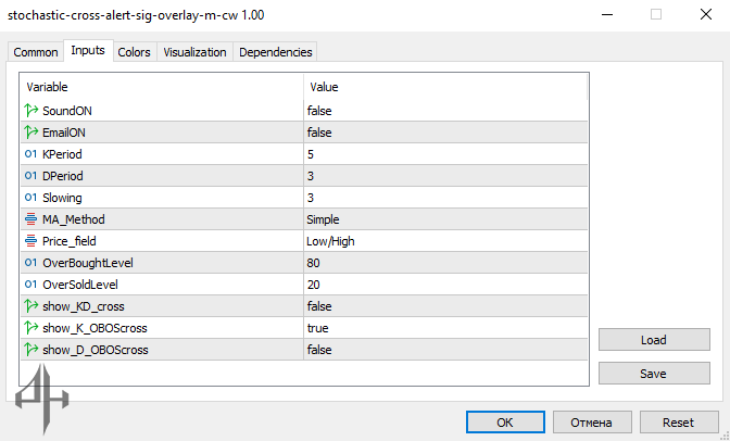 You can also modify the periods of the intersecting lines in the indicator settings to alter the overbought and oversold levels as well as the signal frequency. Additionally, switch the email and sound alerts on and off.
