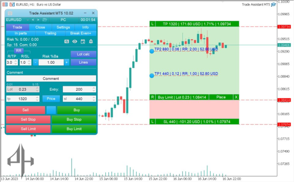 Trade Assistant MT5 keeps traders updated on important market happenings by sending them real-time alerts and messages. Traders can get immediate updates through email or SMS when there is a change in the price, a new trade signal, or the parameters of a trade. Even when you’re not actively watching the market, this function makes sure you never miss a trade opportunity.